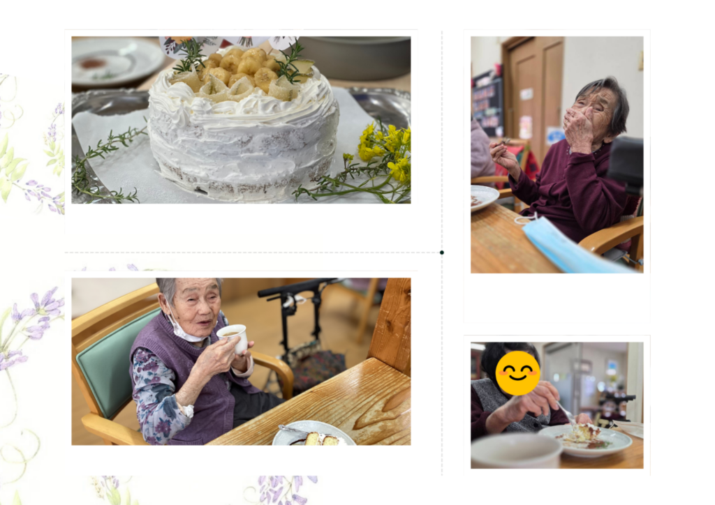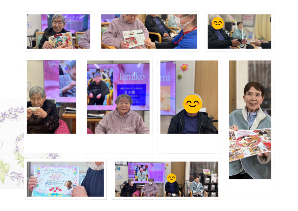 お誕生日のお祝いと、退院決定のダブルの喜びに、ご利用者の皆様からも自然と大きな拍手が沸き起こりました。まさに「喜び」を分けてもらったような気持ちでした。