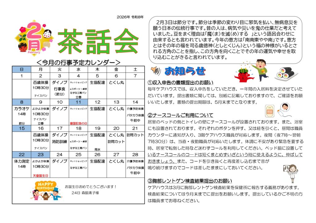 2月の茶話会便りを作成しました