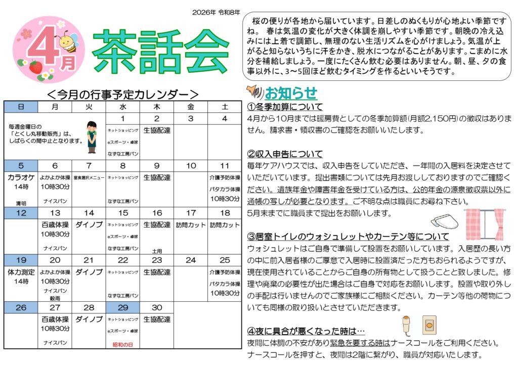 4月の茶話会便りを作成しました。