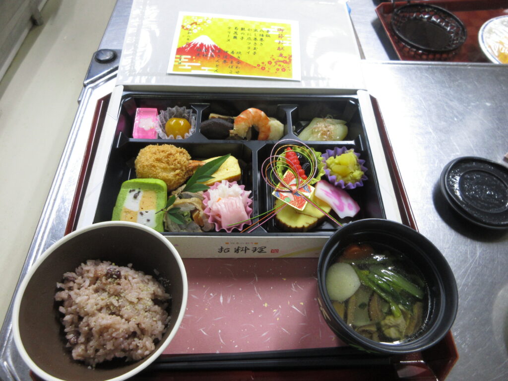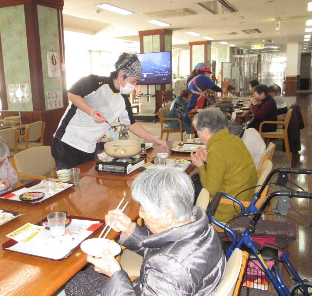 お正月をゆうとぴあで過ごす方に、食を通して少しでもお正月気分を味わい、楽しんでいただけるよう奮闘いたしました。入居者の皆さまに喜んでいただき、とても嬉しく思います。